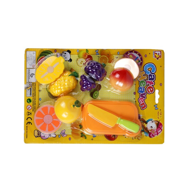 Szeletelj barackot, szőlőt, narancsot és ananászt késsel! A Vágható gyümölcs műanyag készlet műanyagból készült színes gyümölcsöket tartalmaz, amiket egy deszkán tudsz két részre vágni. A gyümölcsök részei tépőzárral kapcsolódnak egymáshoz, a játékkal a kés használatát, és egy-két konyhai folyamatot is meg tudsz tanulni. A Vágható gyümölcs műanyag készlet csomagolási méretei: 21 x 32 x 5 cm.