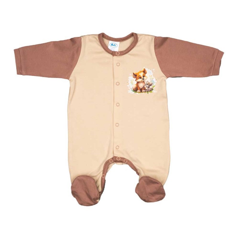 Vékony, pamut, elöl patentos kisfiú rugdalózó Kisróka mintával