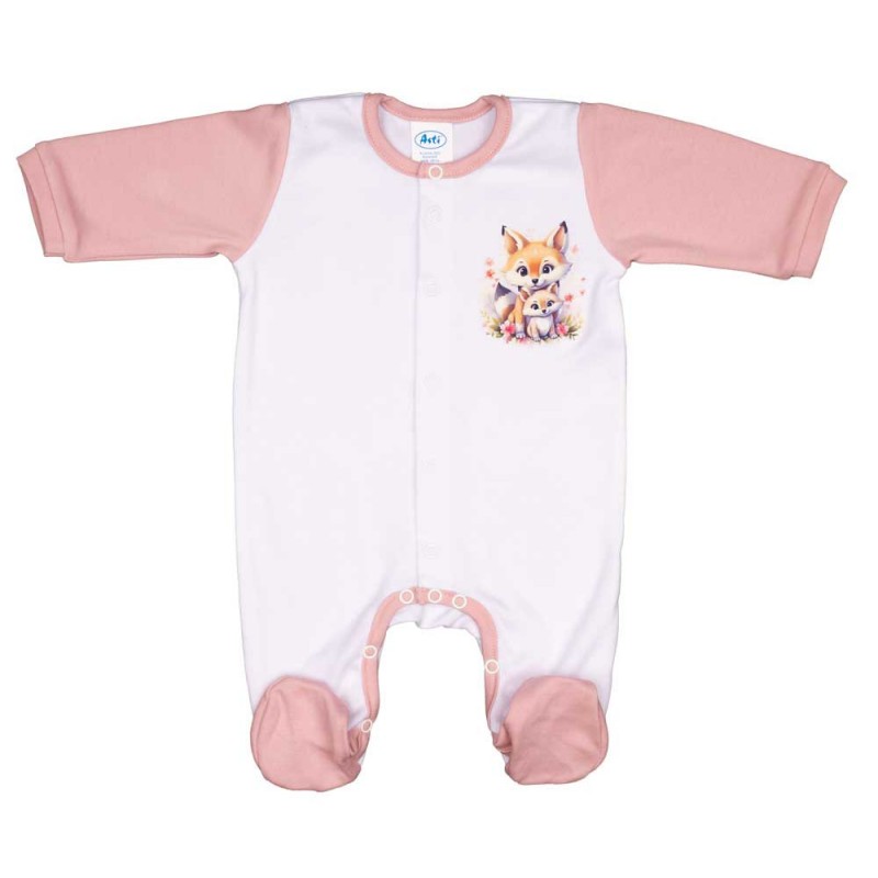 Vékony, pamut, elöl patentos kislány rugdalózó Kisróka mintával